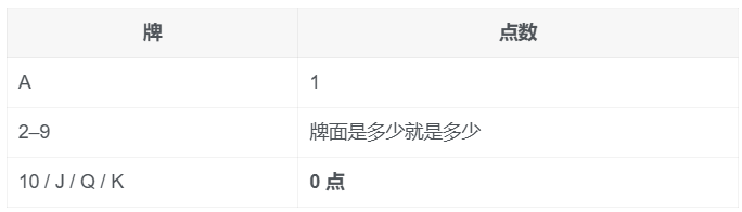 🎯 9 最大,10/J/Q/K 都是 0